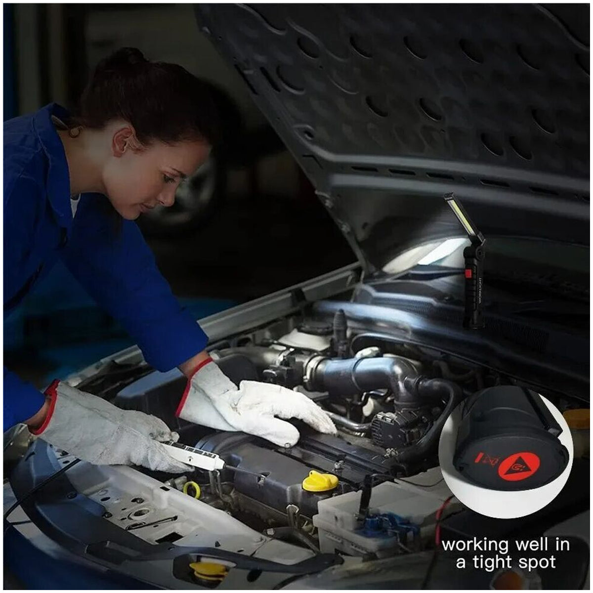 - Foldable COB Light: This light features a foldable COB design that can be adjusted to a 90° angle, allowing you to focus the light where it's needed most.